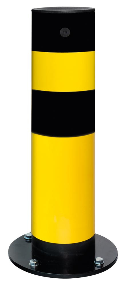 ∙ Extrem belastbarer, flexibler Poller aus Gütestahl ∙ Beim Aufprall schwingt der Poller aus, dadurch wird die Energie direkt absorbiert (progressive Kraftaufnahme) ∙ Innenliegende Stahlspiralfeder ∙ Fußteil mit PU-Puffer ∙ Rohrdurchmesser 159 mm ∙ Wandstärke 4,5 mm ∙ Bestens geeignet für kritische Einsatzbereiche wie z. B. LKW- und Staplerverkehr, Einfahrten, Gebäudeecken etc. ∙ Zum Aufdübeln mit runder Bodenplatte 270 x 10 mm ∙ Neigung bis 25° (ca. 310 mm) · Farbe gelb mit schwarzen Signalstreifen