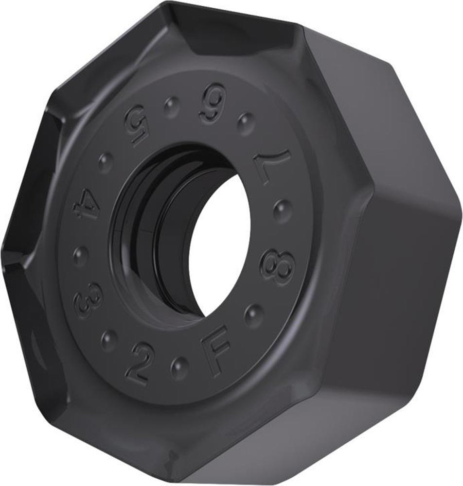 Doppelseitige Fräswendeschneidplatte ONMX 0605 · Oktagonal für eine maximale Schnitttiefe von 4mm · mit 0.8mm Eckenradius · eine Indexierungsgenauigkeit gemäß ISO-Toleranzklasse-M und M Geometrie mit verrundeter und facettierter Schneidkante · M9325 MT-CVD Beshcichtung WC-Co Substrat in der ISO-Gruppe P10 -P30 zum bearbeiten von Stahl mit Planfräsern SON06C