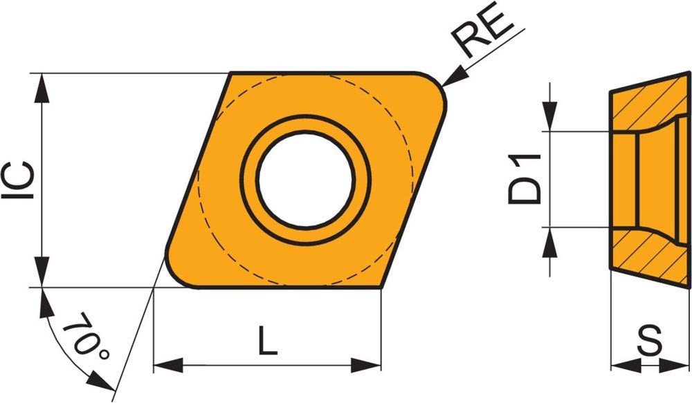 Einseitige Fräswendeschneidplatte XDHW 0702 mit einem ebenen Spanwinkel · 70° Rhombisch für eine maximale Schnitttiefe von 1.0mm · mit 1.0mm Eckenradius · eine Indexierungsgenauigkeit gemäß ISO-Toleranzklasse-H mit verrundeter Schneidkante · M8310 PVD Beschichtung WC-Co Feinkornsubstrat in den ISO-Gruppen K01 -K10 und H05 -H15 zum bearbeiten von Gusseisen und gehärtetem Stahl