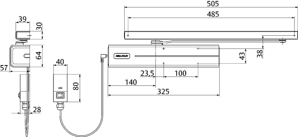 Freilauf-Gleitschienentürschließer DC700G-FMB weiß 9016 EN 3-6