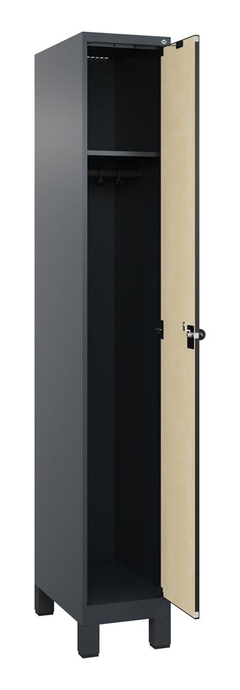 Garderobenschrank, Füße, 1 Abt., Abt.B 400 mm, BxTxH 400x500x1950 mm, HPL-Dekorfront, RAL 7016/Dekor Ahorn E6489794