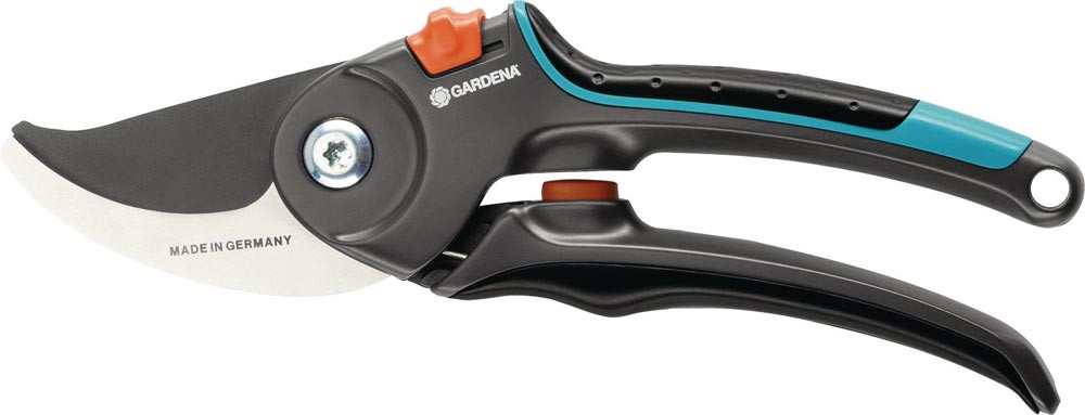 ergonomisch geformte, glasfaserverstärkte mit Wechselkomponenten versehene ErgoTec-Griffe liegen angenehm in der Hand · eingebauter Puffer verringert Stöße · nach dem Bypass-Schneidprinzig arbeitende Messersorgen für einen präzisen und pflanzenschonenden Schnitt · geschliffenes, antihaftbeschichtetes Obermesser · Untermesser aus Edelstahl · mit einer Hand verschließbar