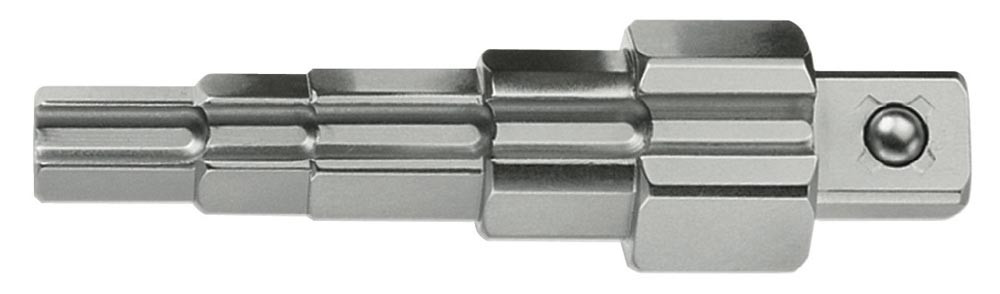 für Ein- und Ausbau von Heizkörperventilnippeln, Rücklauferschraubungen und kurzen Hahnverlängerungen · Chrom-Vanadium-Spezialstahl, gehärtet, vernickelt · Antriebsvierkant 1/2″ · vielfältig einsetzbar, Nocken-, Innen-Sechskant und Zwölfkant-Mitnahme und andere Zwischengrößen · kein Verkanten in Nippeln und Verschraubungen durch spezielle Bauweise des Stufenschlüssels