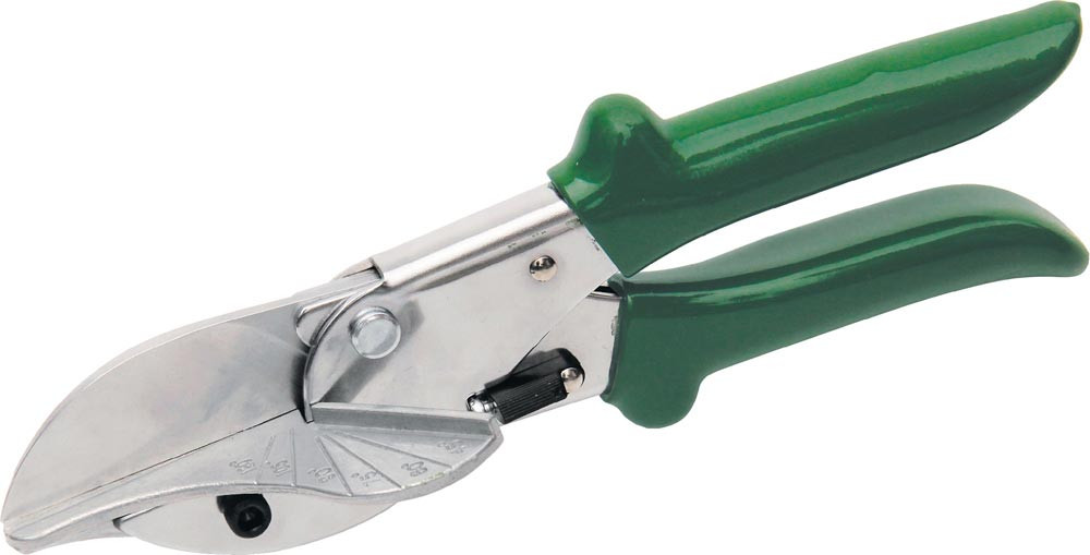 ideal auch für Kunststoffprofile · mit fester Klinge · 2 Anschläge mit Markierungen für 45, 60, 75, 90, 105, 120 ° · Klingenlänge 55 mm · Griff isoliert