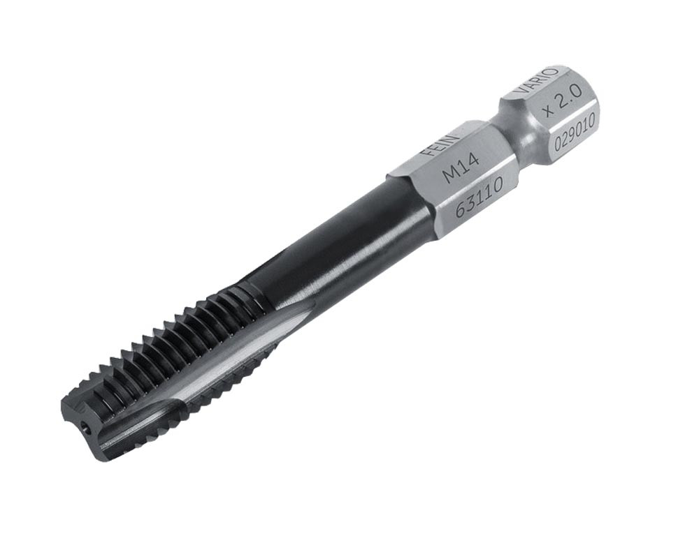 FEIN Vario Gewindebohrer in 11 verschiedenen Größen für Durchgangslöcher. Einzeln oder im Set (M8 - M16) erhältlich. Aus robustem HSS Material mit TiAlN Beschichtung (Titan-AluminiumNitrit). Speziell für die Arbeit mit handgeführten Schlagschraubern. Hitzebeständig bis 800 °C und reibungsärmer dank exklusiver TiAlN Beschichtung.