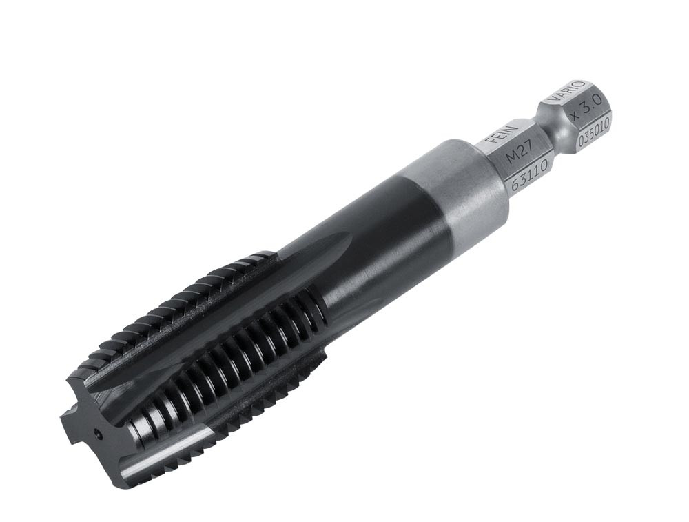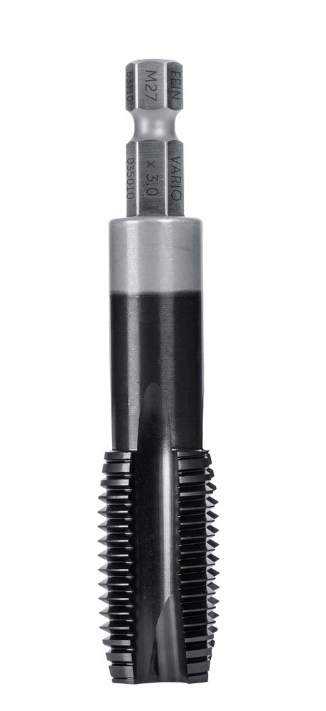 FEIN Vario Gewindebohrer in 11 verschiedenen Größen für Durchgangslöcher. Einzeln oder im Set (M8 - M16) erhältlich. Aus robustem HSS Material mit TiAlN Beschichtung (Titan-AluminiumNitrit). Speziell für die Arbeit mit handgeführten Schlagschraubern. Hitzebeständig bis 800 °C und reibungsärmer dank exklusiver TiAlN Beschichtung.