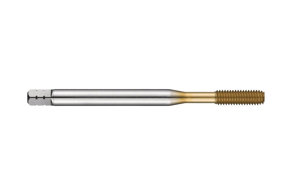 Gewindeformer · Anschnittform E mit 1.5-2xP Gewindeanschnitt · ISO-Metrisches Gewinde M3 mit 0.50 mm Steigung und 6HX Toleranzklasse · Abmessungen nach DIN 2174 Standard mit 3.5mm Schaft und 2.7mm Vierkantantrieb · HSSE-Co mit TiN Beschichtung 3xD Sacklochgewinde in Baustahl · Kohlenstoffstahl und legierter · Ferritischer · Martensitischer und Austenitischer Edelstahl und Reinaluminium oder Aluminiumguss