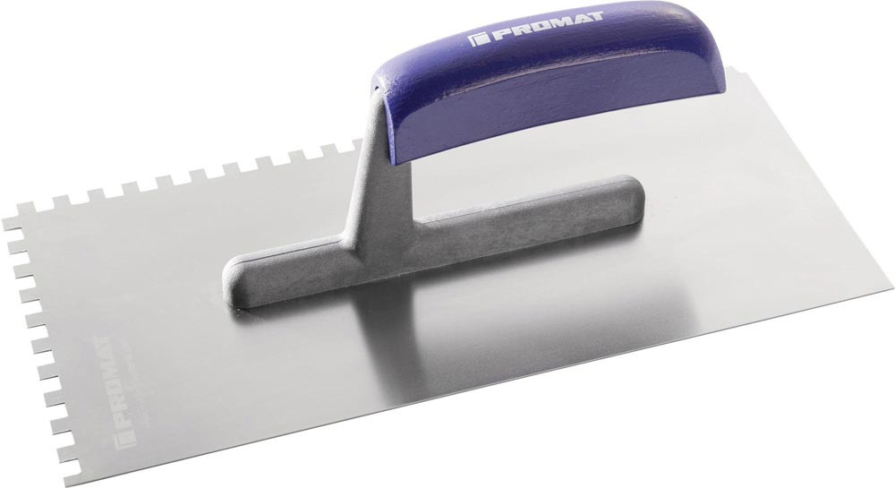 Glättekelle Länge 280 mm Breite 130 mm Zahnung 8x8 gehärtet, m. Buchenholzheft Stahl Stärke 0,7 mm E6019447