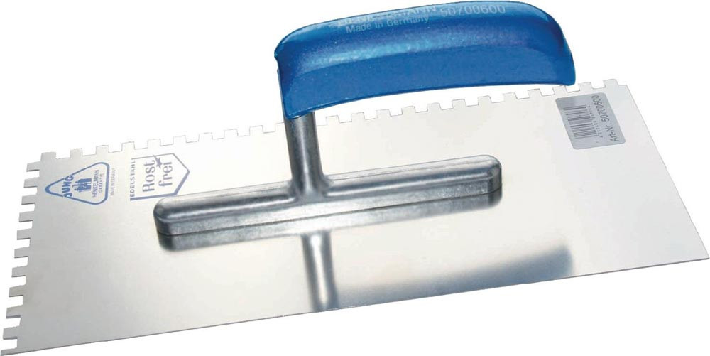 Glättekelle aus rostfreiem Edelstahl, 280 x 130 mm, Zahnung 6 x 6 mm