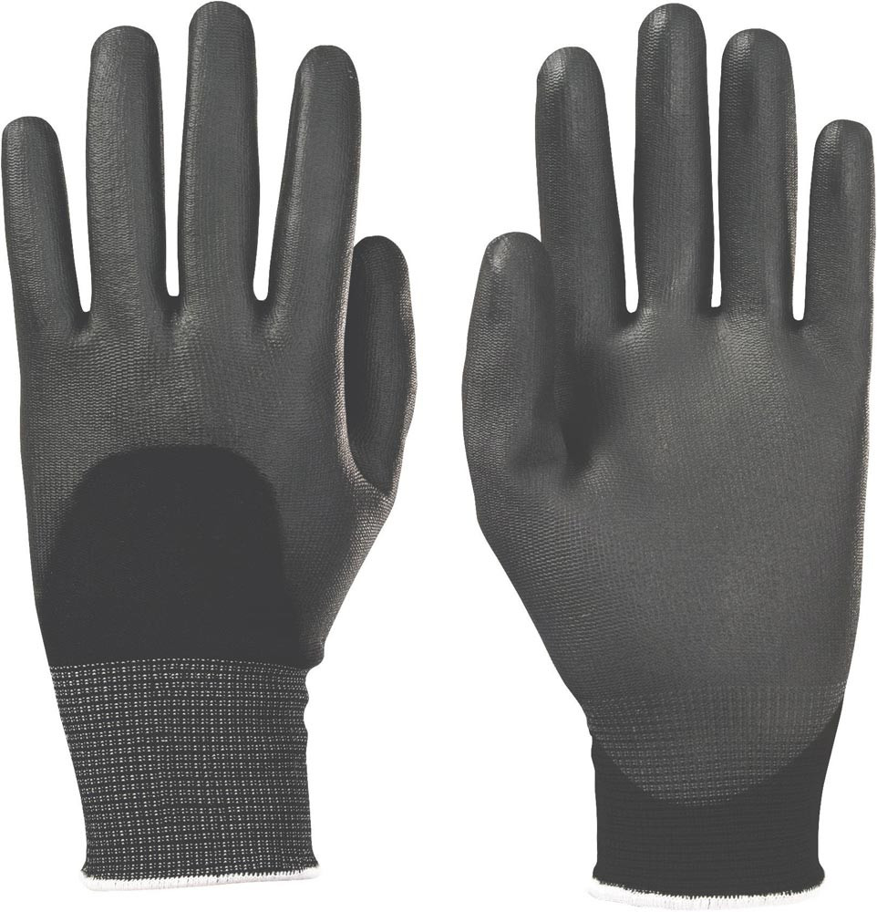 nach EN 388 · Kat.II · mit schwarzer Polyurethanbeschichtung bis über die Knöchel · waschbar · extrem gute Feinfühligkeit · exzellente Passform · hohe Atmungsaktivität · sehr gute Griffsicherheit bei fettigen und öligen Teilen · hohe mechanische Belastbarkeit · erlaubt ermüdungsfreies Arbeiten · geringe Schmutzanfälligkeit · Anwendung: Elektronikindustrie, Montagetätigkeiten, Produktschutz, Feinmechanik, Automobil- und Zulieferindustrie, Lager- und Kommissionierarbeiten, Metall- und Kunststoffverarbeitung