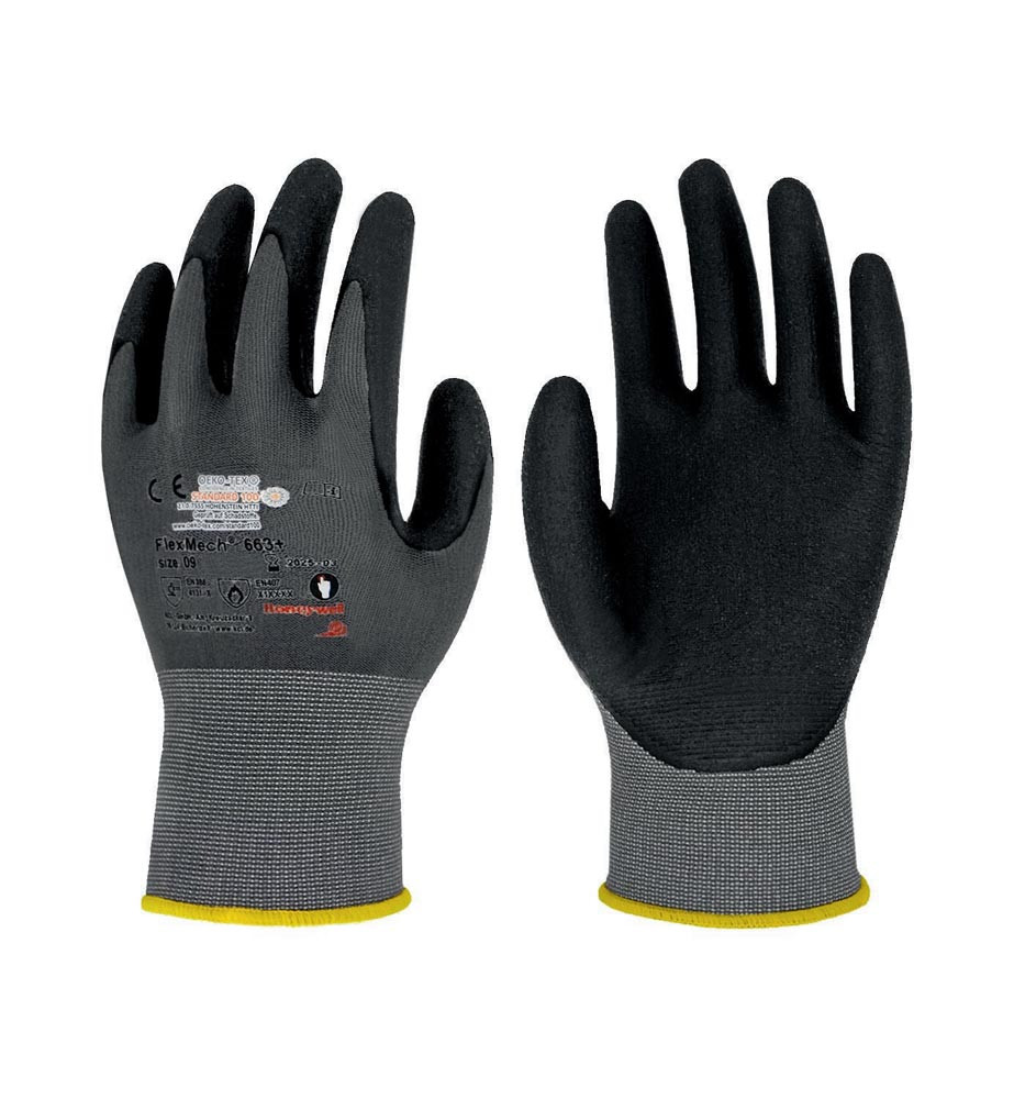 Handschuhe FlexMech 663+ Größe 7 grau/schwarz Polyamid/Nitrilschaum EN420, EN388, EN407 PSA-Kategorie II