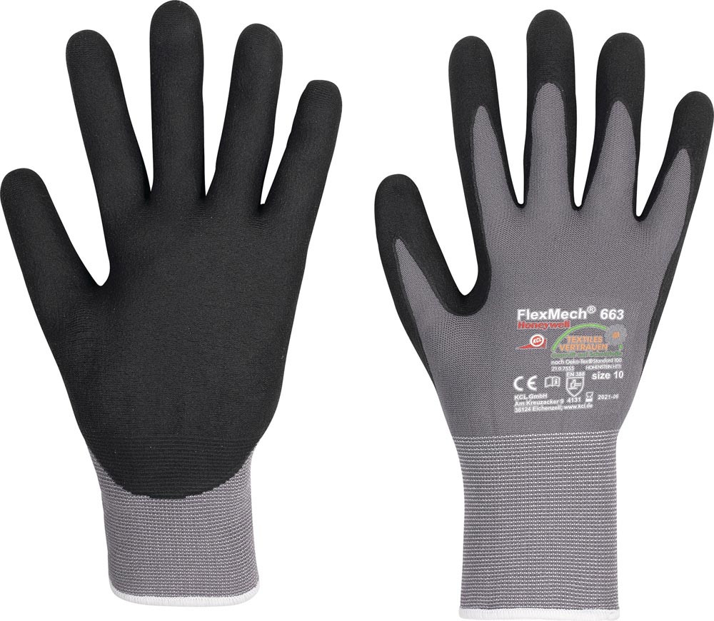Handschuhe FlexMech 663 Größe 10 grau/schwarz Nylon/Elastan/Nitrilschaum EN 388 PSA-Kategorie II 10 Paar E6029918