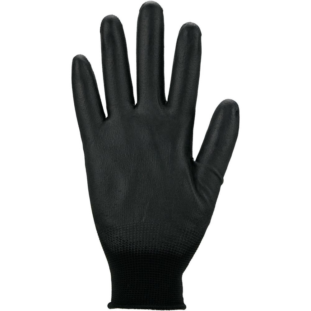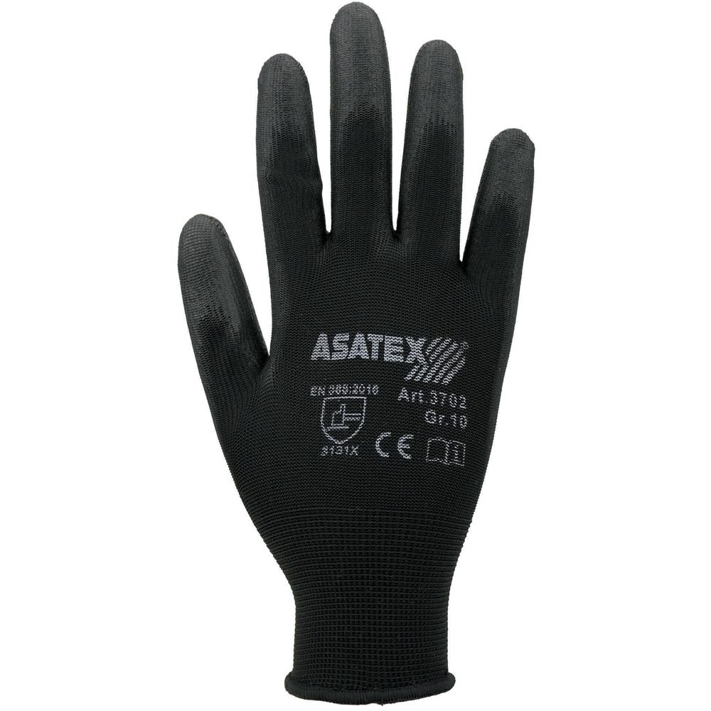 nach EN 388 · Kat. II · PU-teilbeschichtet · 100% Nylon · flüssigkeitsabweisend · gutes Tastempfinden · Passform wie eine zweite Haut · mit Strickbund · waschbar · hohe Abriebfestigkeit · Anwendung: Außenarbeiten, Hightech-Industrie, Verpackung, Lagerarbeiten