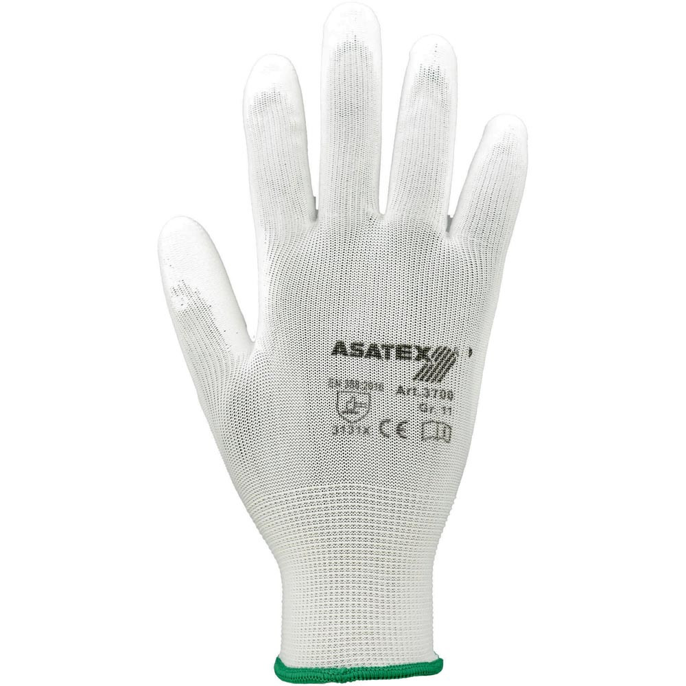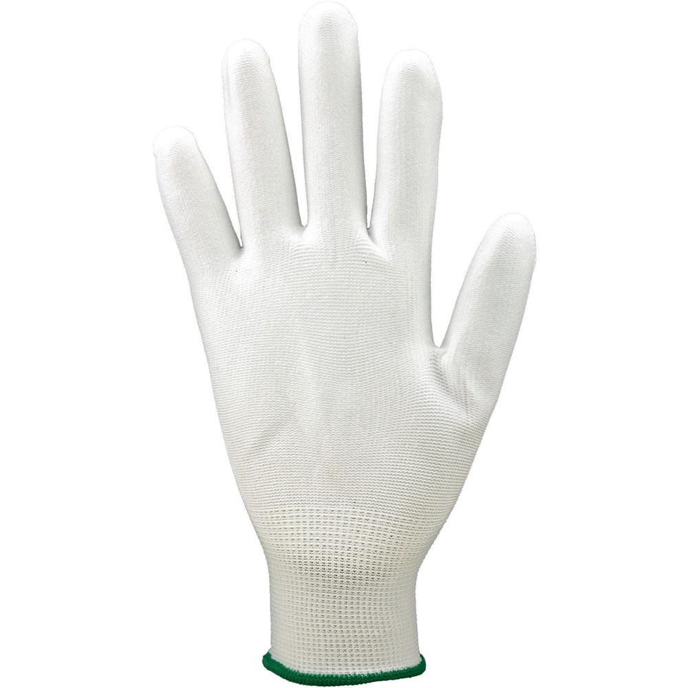 nach EN 388 · Kat. II · PU-teilbeschichtet · 100% Nylon · flüssigkeitsabweisend · gutes Tastempfinden · Passform wie eine zweite Haut · mit Strickbund · waschbar · hohe Abriebfestigkeit · Anwendung: Außenarbeiten, Hightech-Industrie, Verpackung, Lagerarbeiten