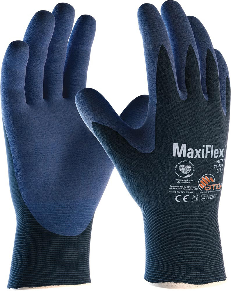 Handschuhe MaxiFlex® Elite™ 34-274 Größe 10 blau/blau Nylon m.Nitrilmikroschaum EN 388 PSA-Kategorie II E6408236