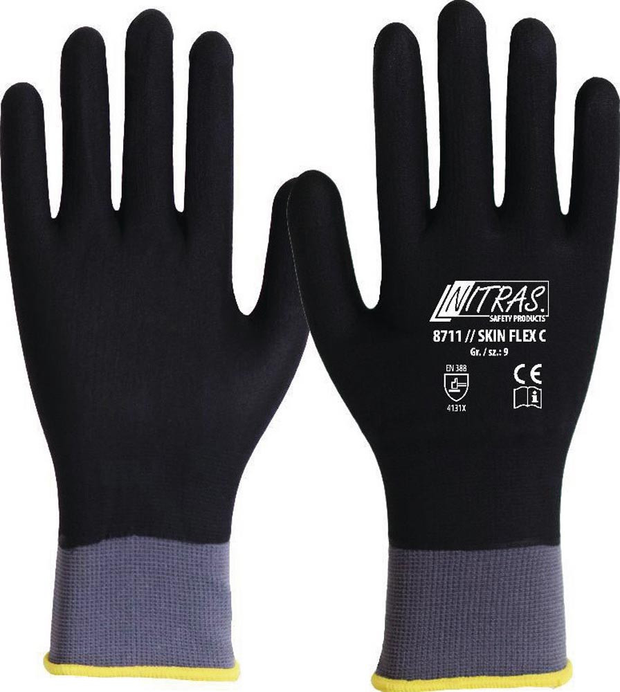 NITRAS SKIN FLEX C · Strickhandschuhe · Spezial-Stretch-Strick · grau · Spezialbeschichtung · schwarz · vollbeschichtet · Strickbund · perfekter Tragekomfort · perfekte Fingerfertigkeit · sehr rutschfest · Top-Qualität · Größe 10 · Anwendung: für präzise Tätigkeiten, Elektroindustrie, Montage, Lager und Logistik, Handwerksbereich