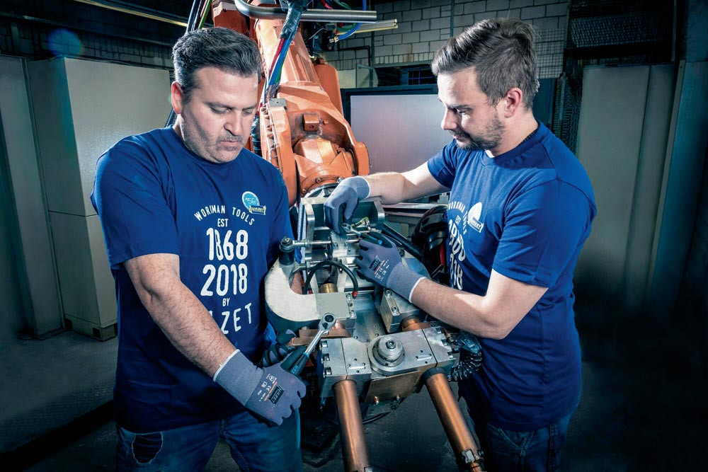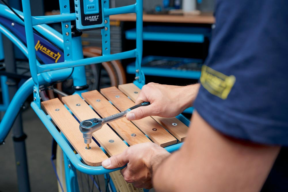 10 mm (3/8 ″)-Vierkantantrieb · mit 2-Komponentengriff · verchromt · mit Kugelsicherung · mit Rastfunktion gegen ungewolltes Umschalten · auch geeignet für das Arbeiten in engsten Bauräumen · statisches Drehmoment nach DIN 3122: bis zu 400 Nm · 90 Zähne · Rückschwenkwinkel nur 4°
