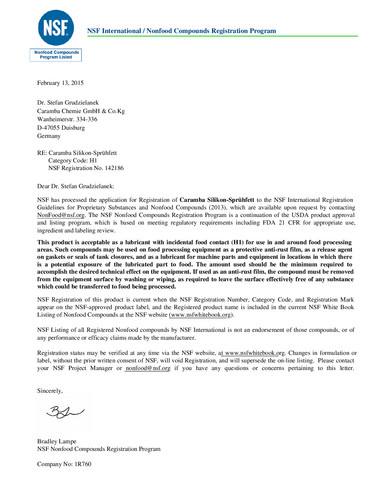 haftfestes Schmiermittel für Metall, Kunststoff und Gummi · hoher Silikonanteil · hervorragene Gleit- und Schmiereigenschaften · oxidations- und korrosionsbeständig · geruchsarm · wasserabweisend · Isolierer bei elektronischen Steckverbindungen · temperaturbeständig von -30 °C bis +200 °C · Freigabe NSF Kategorie H1 (NSF Reg.-Nr.: 142186)