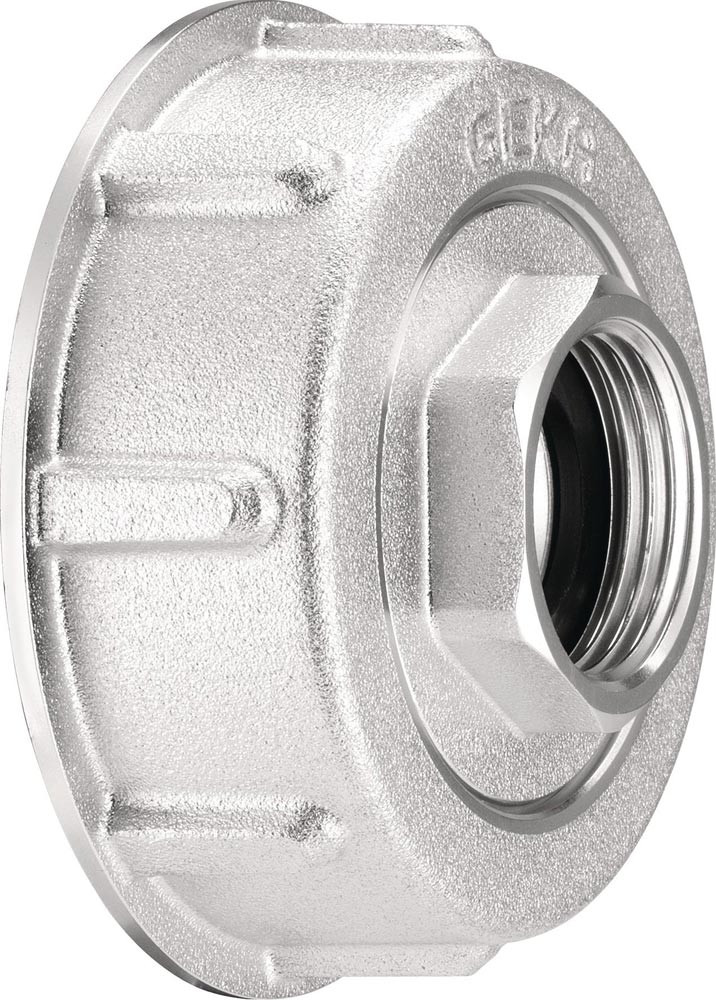 aus robustem und langlebigem Metall · zur Montage an IBC Containern mit einem Auslass S60x6 Grobgewinde · der Adapter hat einen 360° drehbaren Innenring, dadurch kann der Auslass, den man aufschraubt, auch wirklich exakt ausgerichtet werden · endlich keine krumm aufgeschraubten oder tropfenden Hähne mehr
