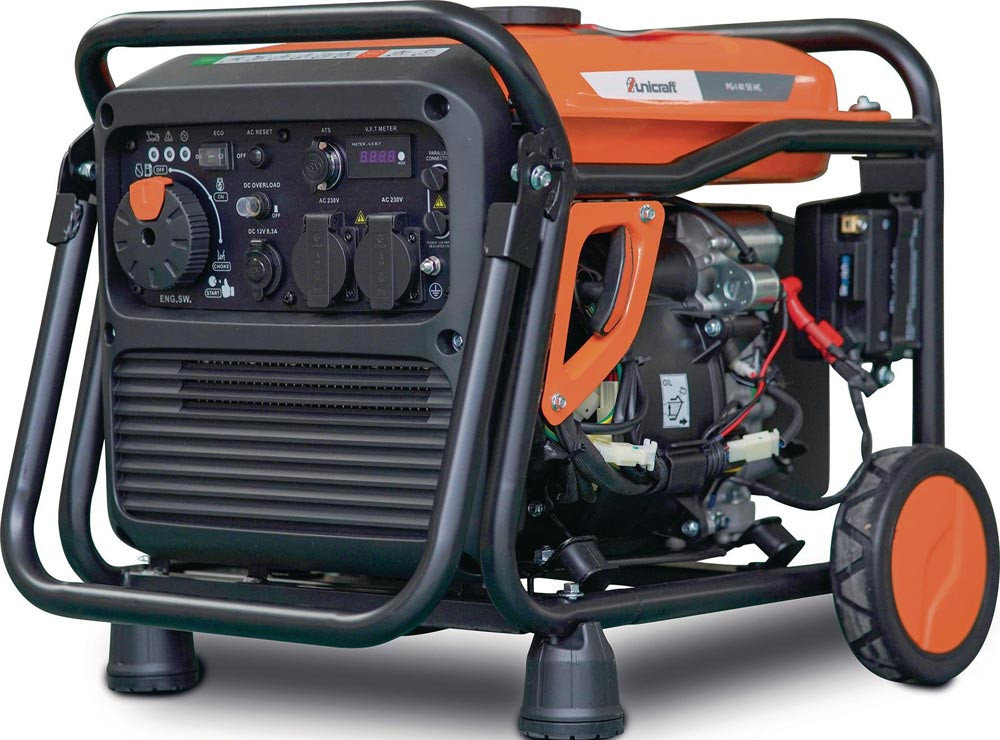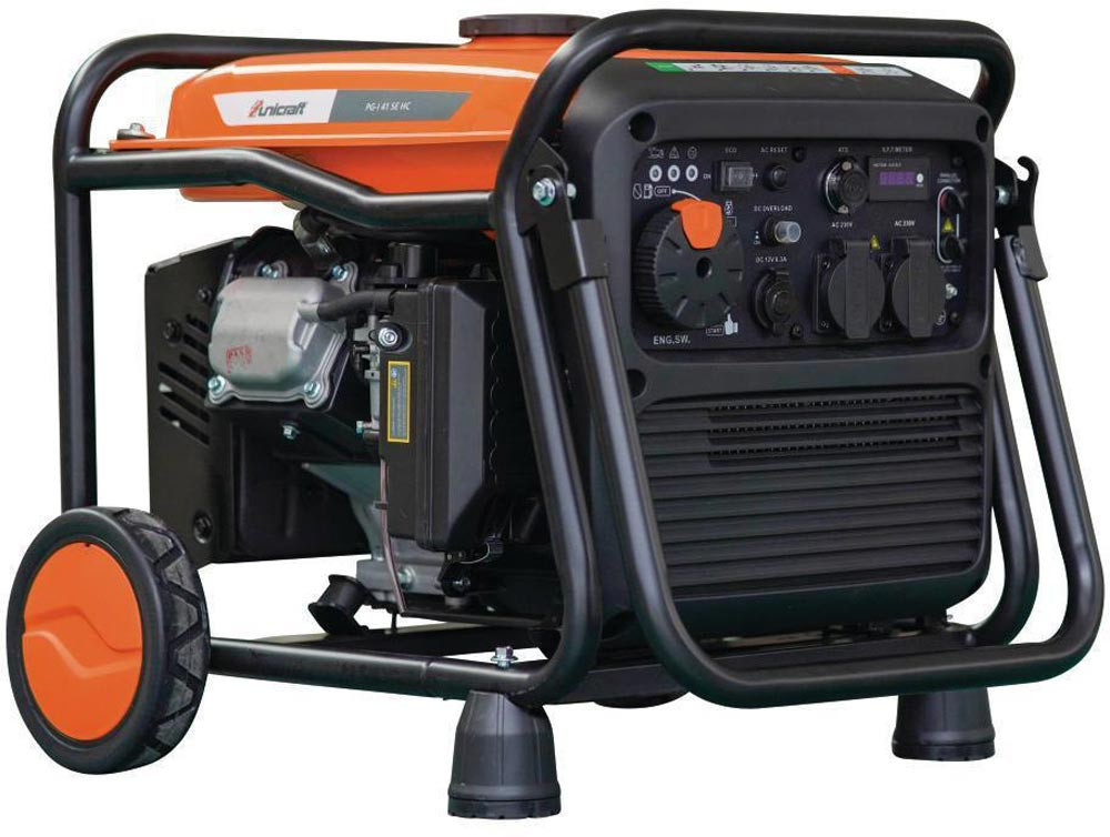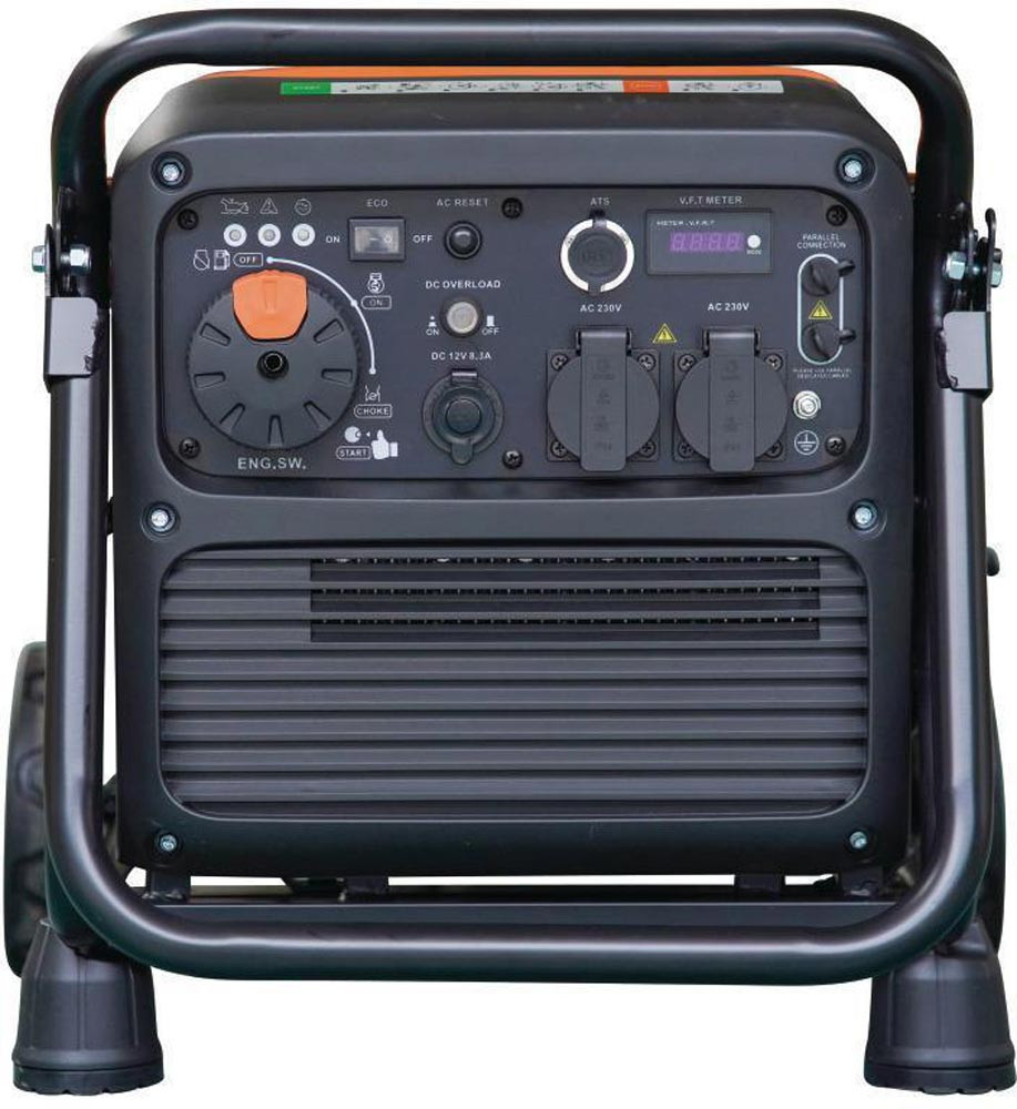 liefert Strom mit reiner Sinuswelle für Geräte mit empfindlicher Elektronik, wie z. B. PC`s · konstante Leistungsabgabe · geräuscharm · leistungsabhängige, stufenlose Drehzahlregulierung · ECO-Modus · Elektrostart: Starten auf Knopfdruck · Kontrollleuchten für Ausgangsspannung, Überlastung und Ölmangel · Choke · Fahrwerk und Transportgriff · geeignet für die Hauseinspeisung mit manuellem optionalem Netztrennschalter