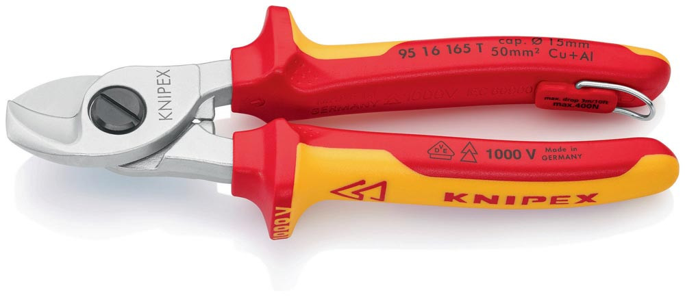Kabelschere Länge 165 mm Kopf verchromt VDE mit Befestigungsöse Mehrkomponenten-Hüllen Form 1