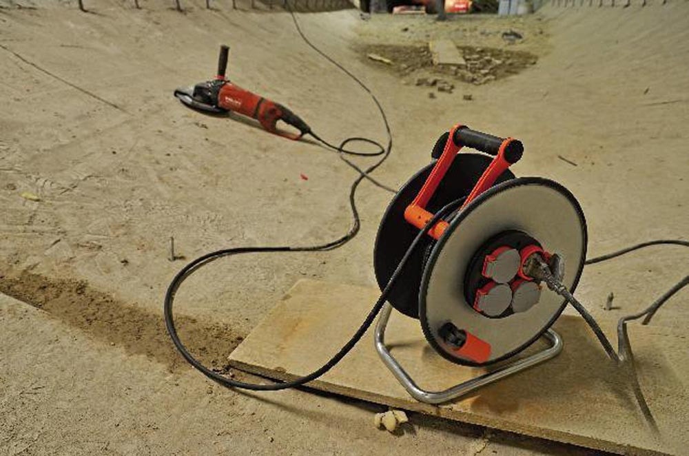 spritzwassergeschützt · mit 4 Schutzkontakt-Steckdosen, mit selbstschließenden Deckeln) und extra robustem Schutzkontakt-Stecker · Trommelkörper aus Stahlblech, Vorder- und Rückseite schutzisoliert · innovativer Tragegriff "cablepilot" für perfekte Kabelführung · großer, stabiler Klapp-Drehgriff · Trommelkörper kälteschlagbeständig bis -25 °C · unempfindlich gegen Benzine und Öle · robustes, ölbeständiges RN-Kabel · Überhitzungsschutz bei Überhitzung und Überlastung · mit optischer Bereitschaftsanzeige im Steckdoseneinsatz · Schutzart: IP44 · Kabelfarbe: schwarz · gemäß BGI 608 K2 · Gummikabel H07RN-F