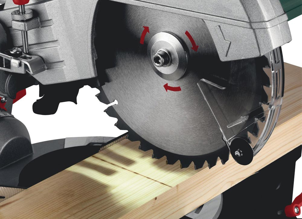 Precision Cut Line (PLC): exakte Schatten-Schnittlinie ohne Nachjustieren · Drehteller mit schneller, präziser Einstellung gängiger Winkel über Rastpunkte · robuste Bauweise aus Alu-Druckguss · Spänefangtrichter · ausziehbare, auch abnehmbare Tischverbreiterungen · Schnellspannzwinge · Skalen und Bedienelemente gut einsehbar und intuitiv bedienbar - ergonomische Griffbereiche