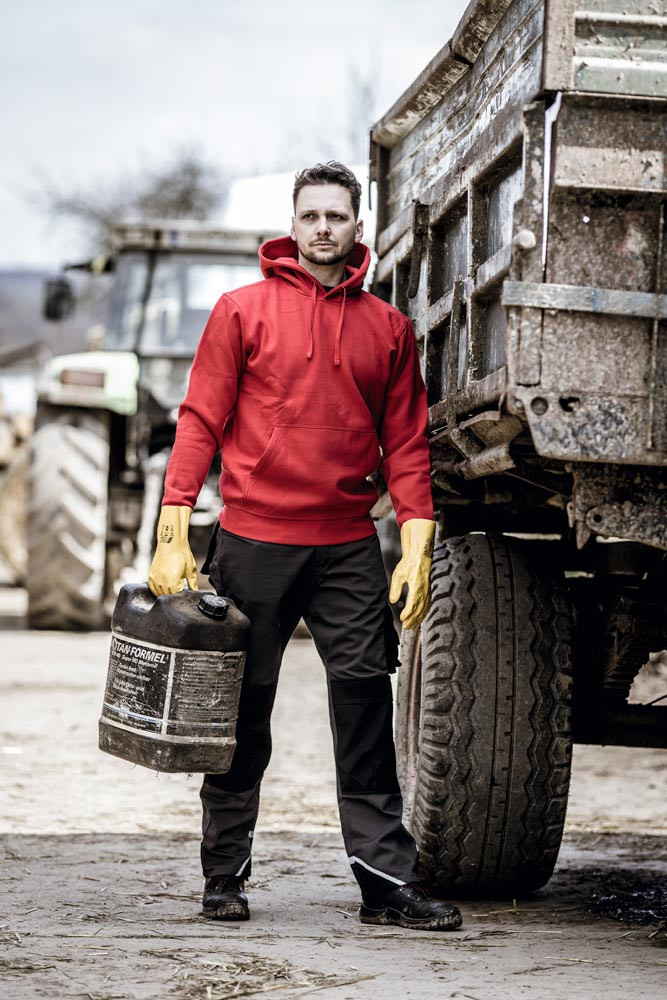 Oberstoff aus 70% Baumwolle, 30% Polyester (Farbe hellgrau 70% Baumwolle, 29% Polyester, 1 % Viskose), 300 g/m2 ∙ Gekämmte Baumwolle, einlaufvorbehandelt, enzym-behandelt, gerader Schnitt ∙ Angenehmer Tragekomfort dank aufgerauter und weicher Innenseite ∙ Gerippte Ärmelabschlüsse und gerippter Bund für optimalen Sitz ∙ Atmungsaktiv ∙ Sportliches Design ∙ Kapuze mit farblich abgestimmtem Kordelzug ∙ Langlebige Doppelnähte an Bund, Ärmeln, Kapuze und aufgesetzter Kängurutasche ∙ STANDARD 100 by OEKO-TEX®, Regular fit