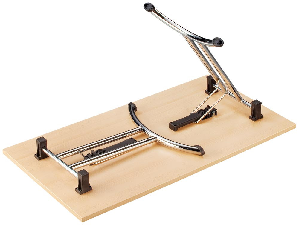 Klapptisch, BxTxH 1200x700x720 mm, T-Fuß-Gestell verchromt, gebogene Kufen, melaminharzbesch. Platte buche