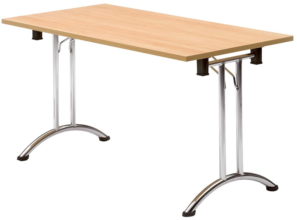 Klapptisch, BxTxH 1400x700x720 mm, T-Fuß-Gestell verchromt, gebogene Kufen, melaminharzbesch. Platte buche E6476452