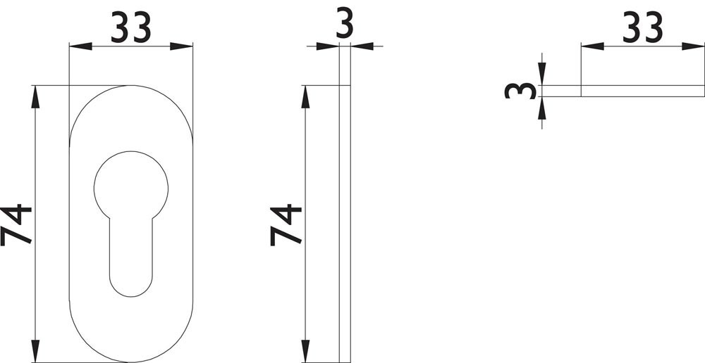 selbstklebend · für Rahmentüren jeder Stärke · Rosetten-Ø33 x 74 mm · Höhe 3 mm · Breite 33 mm · in Edelstahl