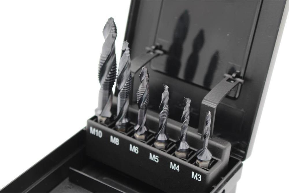 Kombi-Gewindebohrersatz 7tlg. mit Spitzenstufe M3-M10 + Adapter