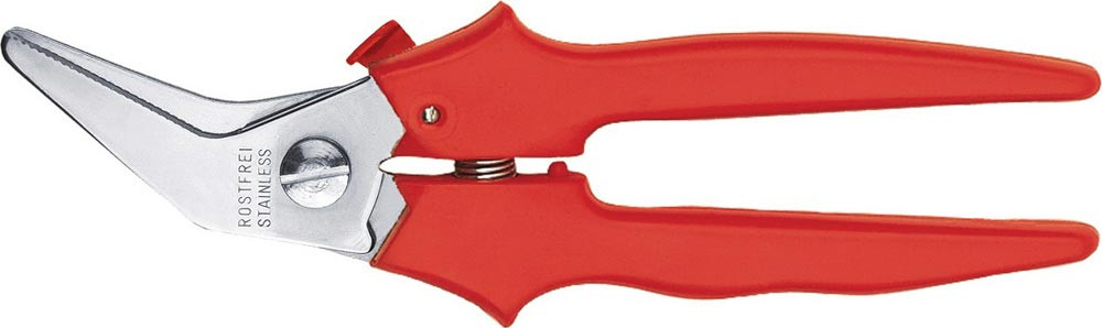 Schneiden aus Edelstahl rostfrei · für Industrie, Handwerk und Haushalt · schneidet Papier, Pappe, Stoff, Feinblech, Zweige, Leder, Teppichboden usw. · schlagfeste Kunststoffgriffe