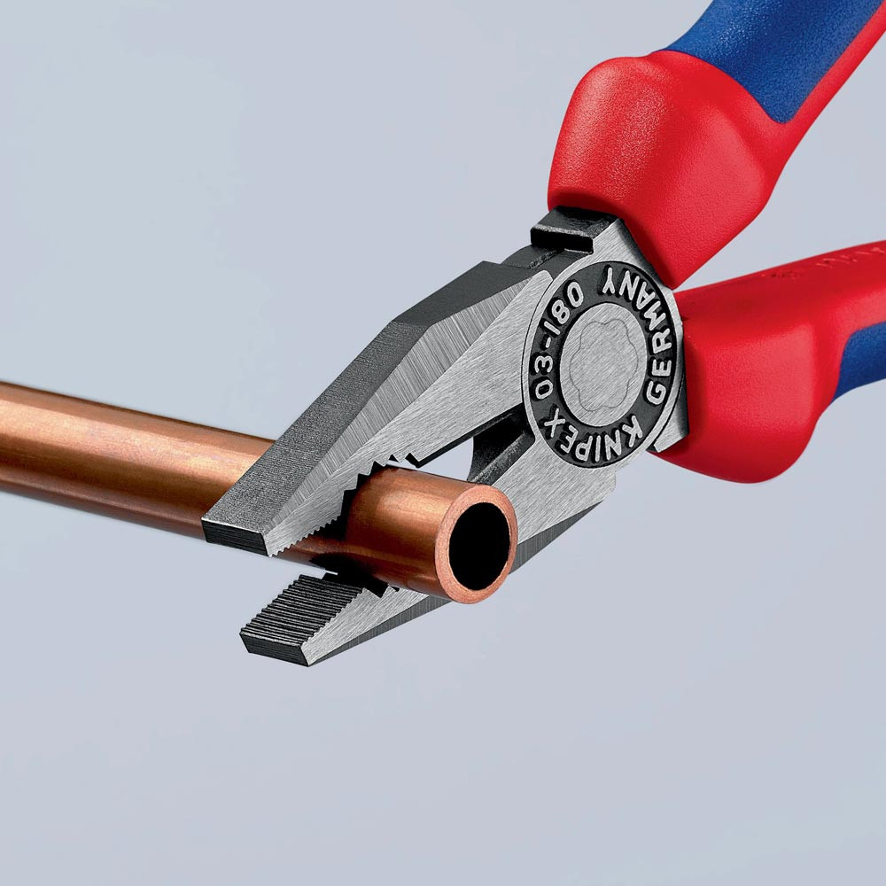 Greifzonen für Flach- und Rundmaterial · lange Schneiden für dickere Kabel · Schneiden zusätzlich induktiv gehärtet, Schneidenhärte ca. 60 HRC · Spezial-Werkzeugstahl, geschmiedet, mehrstufig ölgehärtet