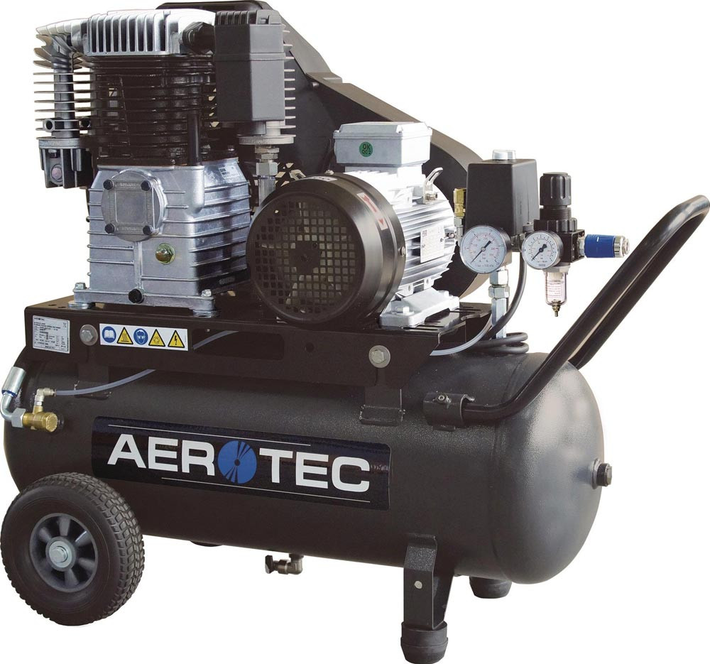 Kolbenkompressor in ölgeschmierter 1-stufiger Ausführung · keilriemenbetriebenes 2-Zylinder Reihen-Aggregat · Anlaufentlastung über Condor Druckschalter · Kondensatablass mittels Kugelhahn · Phasenwenderstecker · Schallleistungspegel 97, Schalldruckpegel 78 dB(A)