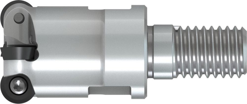 Plan-Kopierfräser mit doppelt negativer Geometrie welche 4 aus RD.. 0702MO.. oder RD.. 07T1MO.. einseitige Wendeschneidplatte · Schneiddurchmesser bis maximal 20mm mit M10 Gewindeschaft für standardisierte modulare Trägerwerkzeuge · 28mm funktional und 47mm Einsatzlänge · durchgehende Kühlung zum Planfräsen · Kopierfräsen · Rampen · progressiven Tauchfräsen und helikalen Fräsen mit einer maximalen Schnitttiefe von 2mm