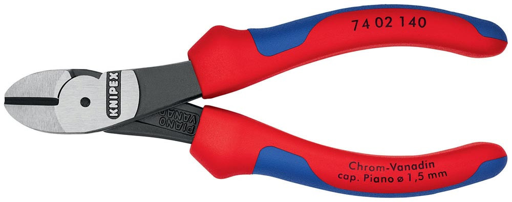 20 % Kraftersparnis gegenüber herkömmlichen Seitenschneider · Schneiden zusätzlich induktiv gehärtet, Schneidenhärte ca. 64 HRC · Chrom-Vanadin-Hochleistungsstahl, geschmiedet, mehrstufig ölgehärtet