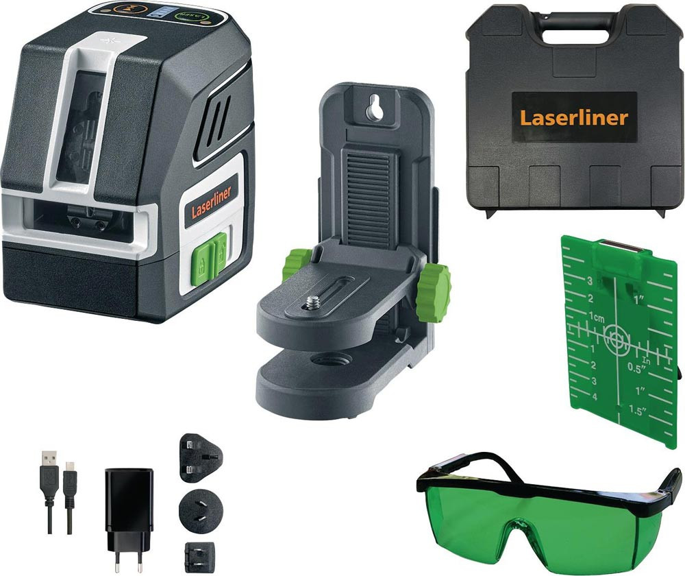 dieser Kreuzlinienlaser projiziert ein gut sichtbares grünes Laserkreuz zum exakten horizontalen und vertikalen Ausrichten von Gegenständen · zusätzlich bietet er eine manuelle Neigungsfunktion für das Anlegen von Gefällen · umfangreiches Zubehör macht den Laser zu einem sehr praktischen und vielseitigen Helfer für exakte Ausrichtarbeiten· der PocketWallHolder, eine multifunktionale, höhenverstellbare und magnetische Halterung, eignet sich zum Anbringen des Lasers an Wänden, Metallkonstruktionen und Stativen· Stativaufnahme 1/4 ″- und 5/8 ″