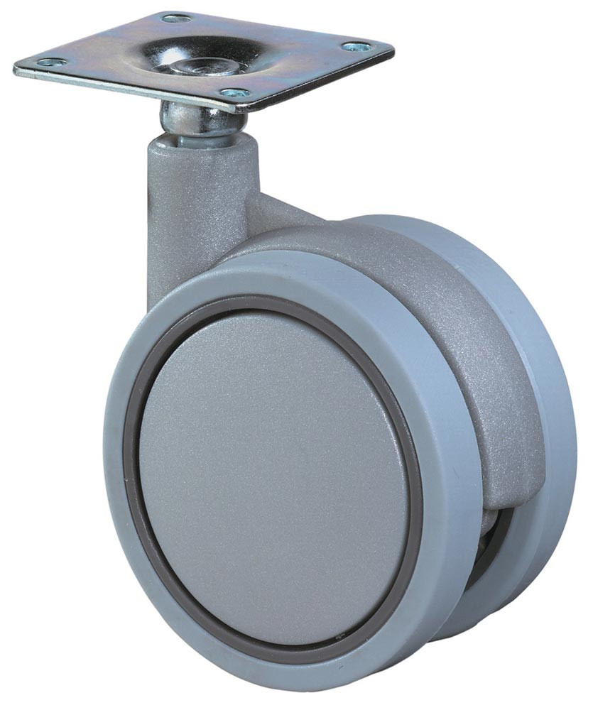 Kunststoffdoppelrolle Rad- 75 mm Tragfähigkeit 50 kg mit Anschraubplatte Kunststoff silbergrau