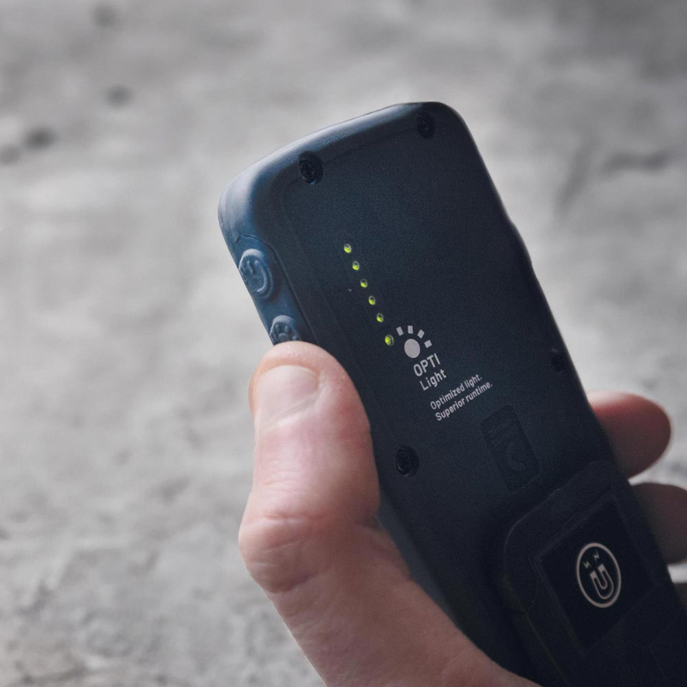 handliche, wiederaufladbare LED-Arbeitsleuchte · MINIFORM ist eine tragbare und über USB-C wiederaufladbare LED-Arbeitsleuchte · kompakte Handlampe ist robust · wasser- und staubdicht (IP65) Die MINIFORM-Arbeitsleuchte ist mit einem eingebauten Magneten und Haken zur flexiblen Positionierung sowie einem Clip zum bequemen Tragen am Gürtel ausgestattet · das ergonomische Design sorgt für einen bequemen Griff und ermöglicht eine einfache Aufbewahrung in der Tasche und einen schnellen Zugriff · verfügt über ein hocheffizientes Multi-LED-Design mit 20 LEDs und bietet eine einstellbare Lichtleistung von bis zu 200 Lumen · mit einem fokussierten Lichtstrahl von 120 Lumen sorgt sie für konzentrierte Beleuchtung bei Inspektionsaufgaben · die benutzerfreundliche Batterieanzeige hält Sie über den Batteriestand auf dem Laufenden · die OPTILight-Einstellung liefert die in einer typischen Arbeitssituation benötigte Beleuchtungsstärke (LUX) und sorgt mit einer einfachen Berührung für optimales Licht und Laufzeit · außerdem bietet diese Arbeitsleuchte eine konstante Lumenleistung · gemessen nach der europäischen Norm EN 13032-1