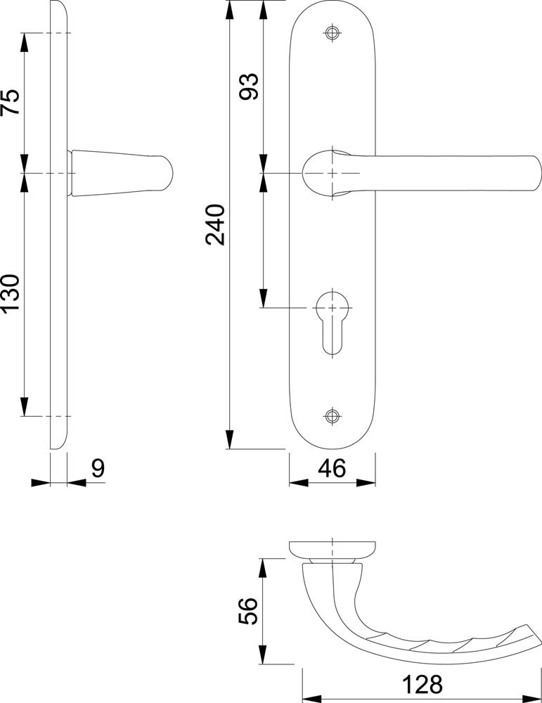 Langschildgarnitur Tky 1710/273P Aluminium F1 SK/OL 78 mm DINlinks / rechts E6428199