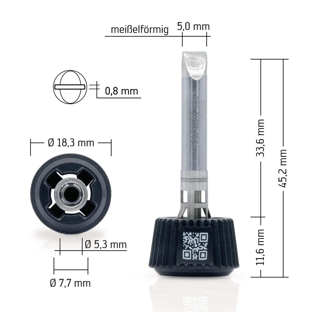 mit patentierter ERSADUR Beschichtung - konzipiert für anspruchsvolle Industrieanwendungen zur dauerhaften Nutzung · Tip’n’Turn release für schnellen und einfachen Spitzenwechsel, selbst im heißen Zustand, per Hand oder mit Hilfe eines Ablageständers · Barcode für die einfache Intregration der Lötspitze in die Lötprogramme des i-CON TRACE Cockpits · passend für: Lötwerkzeug i-TOOL TRACE, i-TOOL MK2, i-TOOL NANO MK2, i-TOOL PICO MK2