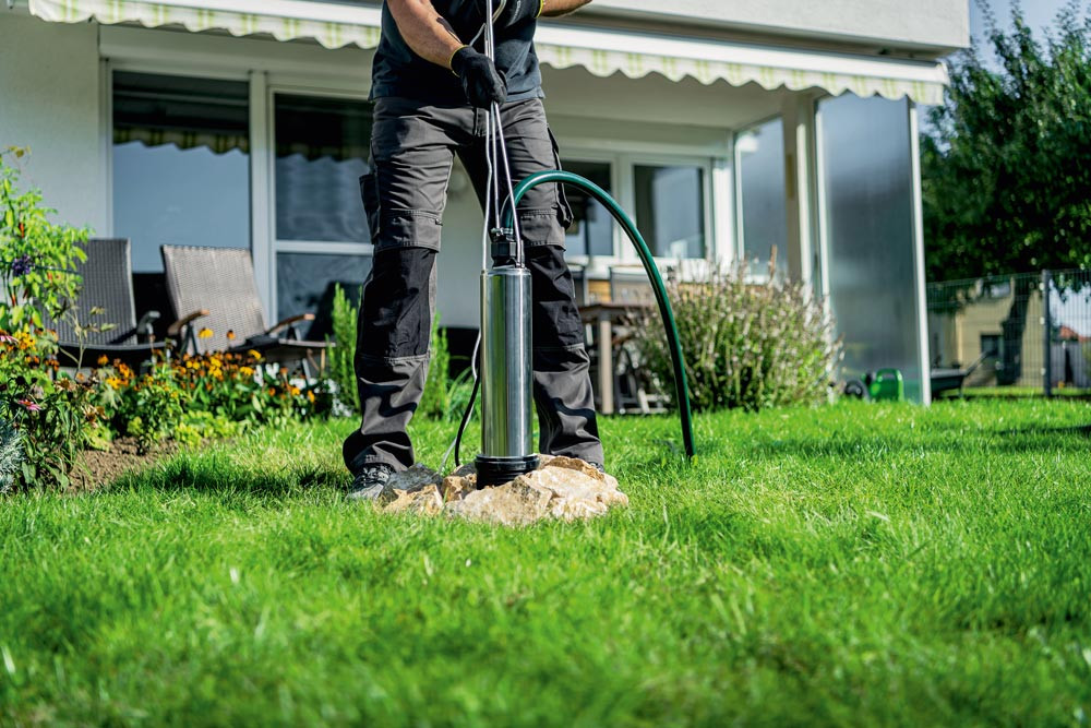 Leistungsstarke, schlanke Tiefbrunnenpumpe mit wartungsfreiem Motor für effizienten, wirtschaftlichen Betrieb ∙ Kraftvolles und leises Pumpenlaufwerk mit 8 Laufrädern für besonders hohe Förderleistung ∙ Schmale Bauform zum Einsatz in Bohrbrunnen ab Ø 100 mm (4") ∙ Robustes Edelstahlgehäuse und hochwertige Komponenten für extrem lange Lebensdauer ∙ Überlastschutz für automatisches Abschalten bei drohender Überhitzung, nach Abkühlung startet die Pumpe von selbst ∙ Eingebautes Rückschlagventil verhindert das Trockenlaufen der Pumpe beim Abschalten ∙ Integrierter Filter und hochwertige Gleitringdichtung für zuverlässige Funktion, auch im Dauerbetrieb ∙ Standfuß für sicheren Betrieb auf dem Grund, optional abnehmbar für den Betrieb im Bohrbrunnen ∙ Komfortable Installation dank praktischer Ösen am Pumpenkopf für das Ablasseil