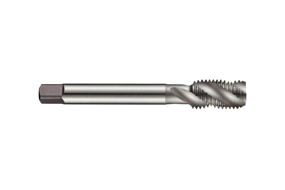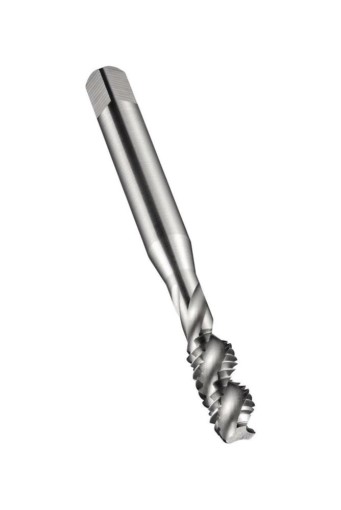Spiral genuteter Gewindebohrer · Anschnittform C mit 2-3xP Gewindeanschnitt · Britisches Standard Feingewinde BSF 3/8″ mit 20 Gängen / Inch und Medium Toleranzklasse · Abmessungen nach ISO 529 Standard mit 10.0mm Schaft und 8.0mm Vierkantantrieb · HSS mit blank dampfangelassen und 40° Helixwinkel 2xD Sacklochgewinde in Baustahl · Kohlenstoffstahl und legierter