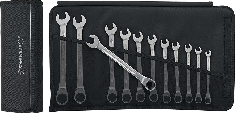 Maulringratschenschlüssel-Satz 17F/12 12-teilig Schlüsselweiten 8-19 mm flach