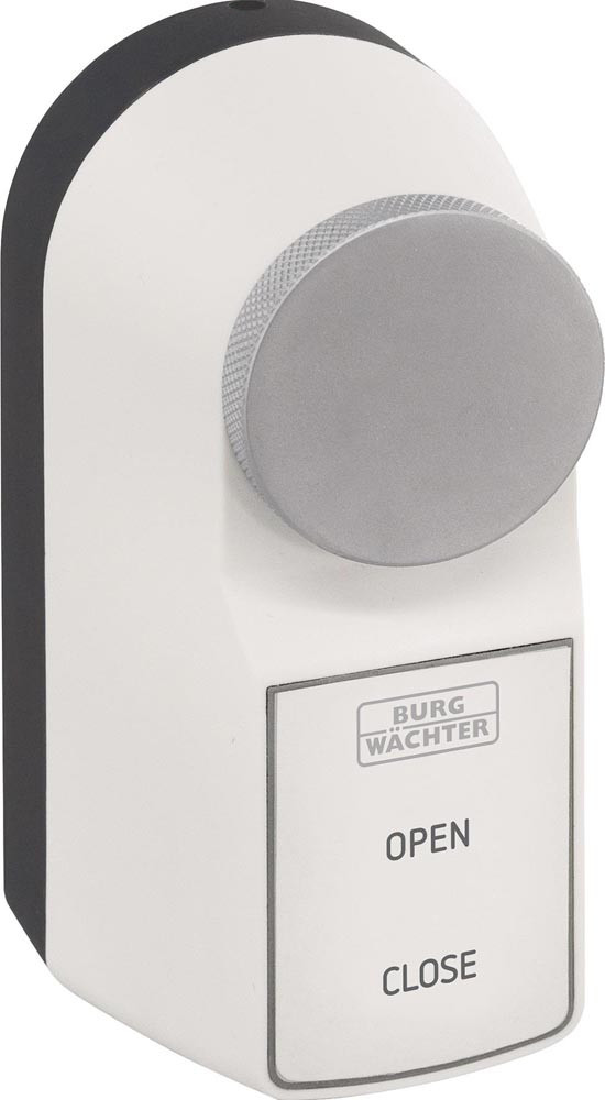Steuern und Programmieren des Schlosses per Smartphone mit der kostenfreien BURGsmart App · Nutzen von Zeitprofilen und Kalenderfunktionen, ideal für Kurzzeitvermietungen, Pflegedienste oder Reinigungsdienste · für alle Türstärken und Euro-Profilzylinder (bis 35 mm überstehend) mit Not- und Gefahrenfunktion geeignet · Motorschloss kann durch Klemmen, Kleben oder Schrauben an der Tür befestigt werden · der besonders kraftvolle Motor mit energieoptimierter Soft-Stop-Funktion sorgt für einen reibungslosen Betrieb · der hochwertig verchromte Metalldrehknauf ermöglicht ein mechanisches Notöffnen, während das Öffnen und Schließen bequem per Tastendruck erfolgt