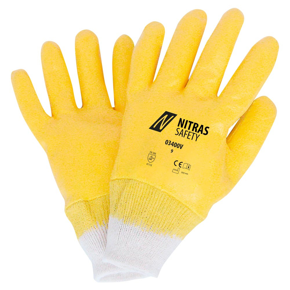 Gefahren-Kategorie II - Schutz bei mittleren Risiken ∙ Nach EN 388:2016+A1:2018 - Schutz gegen mechanische Belastung ∙ Auf Baumwoll-Trikot Nitril vollbeschichtet ∙ Strickbund ∙ Farbe gelb