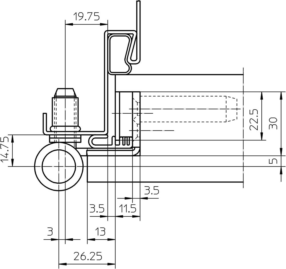 als Umrüstband für gefälzte Schallschutztüren mit Flügeldichtung an Stahlzargen · innenliegender, verdrehsicherer Schraubstift · verdeckt liegende, wartungsfreie Axial-Radial-Gleitlager · Rollenlänge 160 mm · Rollen-Ø 22,5 mm · Belastungswert 160 kg