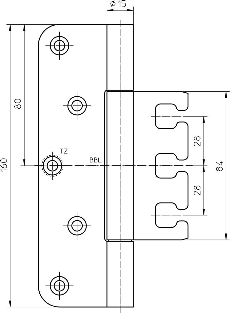 Objektband VARIANT VX 7729/160 Planum Stahl matt verchromt 160 kg 15 mm DINlinks / rechts stumpfe Türen E6432184