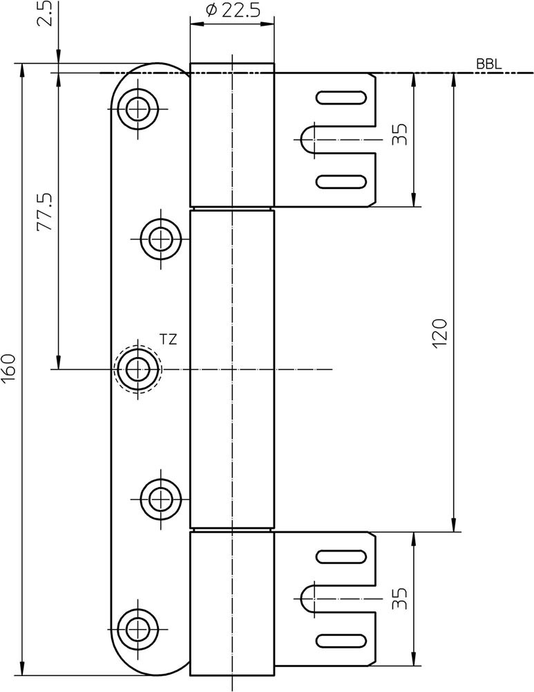 Objektband VN 8938/160 FD Stahl matt vernickelt / F2 160 kg 22,5 mm DINlinks / rechts gefälzte Türen